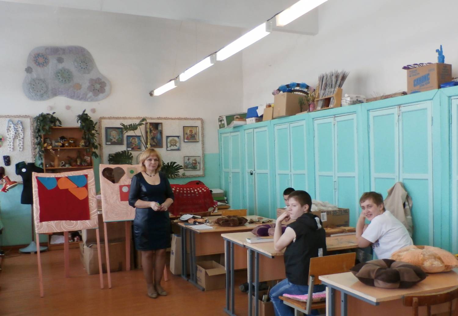Показателен был и конец урока. Все девочки оценили свою работу. Причём, подходили к оценке своего труда серьёзно и, не смотря на проблемы в речи, которые существуют у некоторых из них, даже постарались объяснить, почему они поставили себе такую оценку. А для гостей окончание урока было ещё более замечательным. В подарок каждый получил от девушек замечательную подушку- думку. Неожиданно, но приятно! Огромное спасибо за урок всем участникам и успехов в дальнейшем освоении швейного дела!